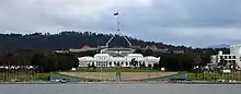 Федеральное правительство переехало в Канберру 9 мая 1927 года, в день открытия временного здания парламента страны[57][58]. Премьер-министр Австралии, Стэнли Брюс (англ. Stanley Bruce)[59], официально поселился в своей резиденции за несколько дней до этого[60]. Запланированное развитие города значительно замедлилось в годы Великой депрессии 1930-х годов и во время Второй мировой войны[61]. Некоторые проекты, например, здания католического и англиканского соборов, так и не были реализованы.