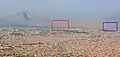 Древний город Старого Кандагара (красный) и горное обнажение (синий) на западной стороне
