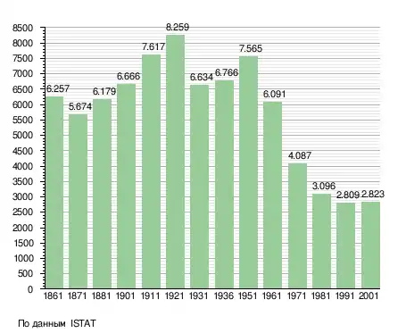 Население составляет 2755 человек (2008 г.), плотность населения составляет 28 чел./км². Занимает площадь 96 км². Почтовый индекс — 71024. Телефонный код — 0885.