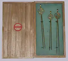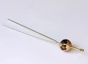 - Татисаси (яп. 立挿し, втыкающееся вертикально): находятся в верхней части «крыльев» причёски.