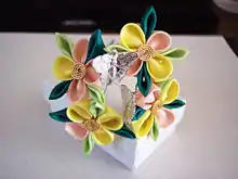 二月 (февраль, нигацу). Началу февраля подходят цветы сливы, тюльпаны и бабочки, а концу — нарциссы. В канун Сэцубуна (обакэ) надеваются два особых вида кандзаси: украшенные шариками кусудама и бумажными вертушками.