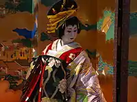 十二月 (декабрь, дзю: нигацу). Декабрь — время подготовки к Новому году. Майко и гейши украшают причёски особыми кандзаси, с сосновыми иглами, белыми мотибана (яп. 餅花, искусственные цветы, похожие на маленькие комочки моти, насаженные на ветки — символ Нового года), листьями бамбука и двумя маленькими кусочками бумаги, напоминающими таблички для имён актёров. По традиции во время представления каомидзэ сокэн (яп. 顔見世 каомидзэ со:кэн) майко заходят в гримёрки к своим любимым актёрам за автографами. Автографы ставят прямо на кандзаси. Один из актёров должен быть оннагата, исполняющим женские роли.