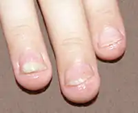 Паронихии характеризуются отёком, инфильтрацией, гиперемией валиков ногтя, отсутствием надногтевой кожицы (эпонихиум). Околоногтевой валик при этом несколько надвигается на поверхность ногтя. Часто паронихии и онихии существуют одновременно.