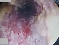 Острый эритематозный кандидоз полости рта (острый атрофический кандидоз полости рта) проявляется выраженной болезненностью и эритемой, особенно на нёбе и тыльной стороне языка. Нитевидные сосочки исчезают, и дорсальная поверхность языка кажется гладкой.[8]