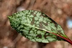 Имеется 2 постоянных прочных супротивных листа, лежащих у основания растения, от овальной до яйцевидно-ланцетной формы длиной 6—10 см, коричневого, зелёного, тёмно-зелёного или серо-зелёного цвета.