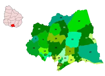 Департамент Канелонес делится на 30 муниципалитетов: