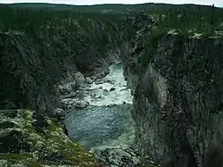 Вторую часть пути после озера Каниаписко река зачастую течёт в узких каньонах, образуя многочисленные стремнины, пороги и водопады[4]