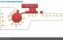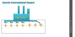- Терминал 1 используется чартерными авиакомпаниями из Мексики и стран Северной Америки.