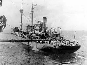 - Поскольку «белых» в строго говоря на тот момент ни в Николаеве, ни в Крыму не было, вероятно, в данном случае имеется в виду флот УНР, правительство которой опубликовало 13 марта 1918 года закон, провозглашавший российский военный и торговый Черноморский флот флотом УНР — См. Богдан Гнатевич. ІСТОРІЯ УКРАЇНСЬКОГО ВІЙСЬКА. Третя частина. Збройні сили сучасної доби. — Київ : Пам`ятки України, 1993 (оригинал — Львів, 1936) — С. 435. Но действительно ли переходили эти суда под контроль УНР или оставались в Красном Черноморском флоте, а впоследствии — в созданных 22 марта 1918 года вооружённых силах ССР Тавриды — неясно. Также в источниках противоречивая информация о переходе флота к Украинской Державе 29 апреля 1918 года — См. Богдан Гнатевич. ІСТОРІЯ УКРАЇНСЬКОГО ВІЙСЬКА. Третя частина. Збройні сили сучасної доби. — Київ : Пам`ятки України, 1993 (оригинал — Львів, 1936). — С. 438. и (альтернативная точка зрения) — Гарчев П. І. та ін. Республіка Тавріда. — Київ : Видавництво політичної літератури України, 1990. — С. 112.
