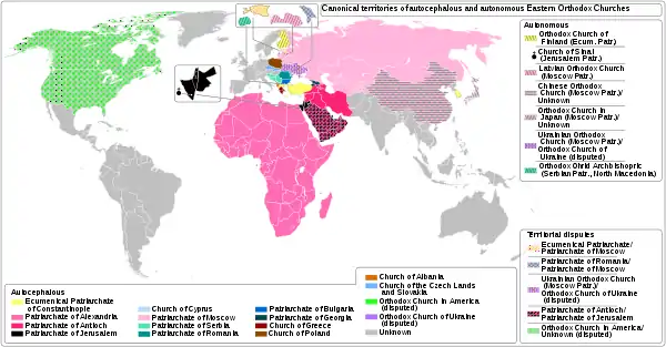 В сложившейся ситуации Александрийскому патриархату удалось отстоять свою юрисдикцию над всей территорией Африки. Грузинский же патриарх объявил себя католикосом всех грузин, независимо от того, на чьей территории они проживают. Общепризнанной канонической территорией Русской Православной Церкви (РПЦ) является территория бывшего СССР (за исключением Армении и Грузии), также РПЦ претендует и на Китай, и на некоторые приходы в США.