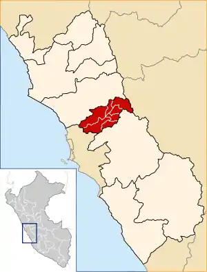 Расположена в центральной части региона. Граничит с регионом Хунин (на востоке) и провинциями: Уараль (на севере), Уарочири (на юге) и Лима (на западе).