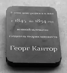 Гео́рг Ка́нтор (нем. Georg Ferdinand Ludwig Philipp Cantor, 3 марта 1845, Санкт-Петербург — 6 января 1918, Галле (Заале)) — немецкий математик, ученик Вейерштрасса. Наиболее известен как создатель теории множеств. Основатель и первый президент Германского математического общества, инициатор создания Международного конгресса математиков.