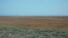 Флору представляют — саксаулы и другие кустарники, адыраспан (местная священная трава), колючки и приспособленные к местному климату травы. Фауна тоже разнообразная — тут и сайгаки водятся, и волки, лиса, зайцы, рыси, ежи. Из рептилии — гадюки и другие змеи, ящерицы, черепахи, лягушки. Тут можно сказать рай для энтомолога, потому что тут обитают разные виды насекомых начиная от скорпионов и каракуртов до различных видов пауков. Над этой местностью лежит путь миграции птиц весной и осенью. Здесь одно из мест обитании Беркута — символа Флага Казахстана.