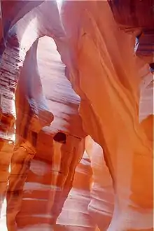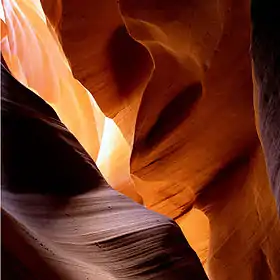 Каньон Антилопы (англ. Antelope Canyon) — каньон, расположенный на юго-западе США[1], на севере Аризоны, рядом с городом Пейдж, неподалёку от границы с Ютой, в 240 км от Большого каньона. Каньон получил своё название, благодаря рыже-красным стенам, напоминающим шкуру антилопы. Каньон Антилопы не является национальным парком и вероятно, поэтому не известен так широко как Большой каньон или каньон Брайс. Он лежит на землях племени Навахо и принадлежит индейцам этого племени. Чтобы попасть туда, нужно заплатить пошлину за проход по индейской территории и нанять проводника. Существует два каньона Антилопы — верхний и нижний (англ. Upper Antelope Canyon, англ. Lower Antelope Canyon). Они знамениты среди фотографов всего мира из-за причудливой формы скал, освещённых восхитительным магическим светом. Оба каньона представляют собой естественно возникшие гигантские щели в массиве песчаника. В течение длительного времени вода и ветер вытачивали в красном песчанике углубления на несколько сотен метров. Раз в несколько лет, во время ливневых дождей, каждый каньон, обычно пересыхающий в течение года, затопляется водой. Именно дождевая вода, медленно стекая и унося с собой песчинки, за много лет сформировала эти изящные рельефные линии внутри скал[2].