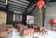 В 1890 году в Гуанчжоу Кан Ювэй открыл частную школу Вань му цао тан (кит. 萬木草堂, «Соломенная хижина среди мириады древес и трав»), в программу которой были введены некоторые предметы «западной науки», а также неоконфуцианство в версии самого Кана. Его учениками сделались Лян Цичао и Чэнь Цяньцю (1869—1895), уже тогда отличавшиеся способностями. Вместе с ними Кан Ювэй разработал специфическую историко-филологическую концепцию, нашедшую отражение в двух трудах: «Исследование подложных канонов Синьского учения» (кит. 新学伪经考, 1891 год) и «Исследование учения Конфуция об изменении правления» (кит. 孔子改制考, вышла в свет в 1896 году). В школе проводились ритуалы, напоминавшие о временах Конфуция, а также был принят календарь от его рождения[20]. Интересной особенностью учительской деятельности Кана было то, что все студенты были обязаны вести дневники, которые в конце месяца сдавались наставнику для контроля и проверки. Записи должны были делаться по шести разделам: 1) воспитание духа, 2) улучшение поведения, 3) общение с людьми, 4) совершённые поступки, 5) прочитанные книги, 6) текущие политические дела[21].