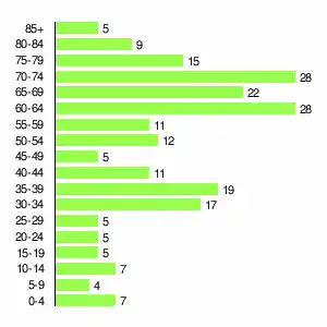 | Жителей | 593 | 671 | 629 | 616 | 501 | 381 | 301 | 257 | 215 |