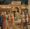 Верхний ярус фресок посвящён жизни Св. Стефана (Церковь в Иерусалиме):