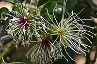 Цветки различных видов (слева направо): Boscia albitrunca. Crateva religiosa. Maerua cafra. Steriphoma cleomoides | ||||||||||