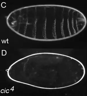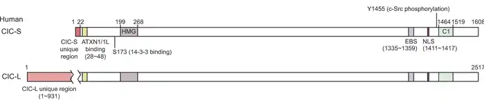 Ген CIC был впервые идентифицирован в 2000 году в организме мухи-дрозофилы.[1] Было показано, что он кодирует транскрипционный репрессор, участвующий в регулировке процессов эмбриогенеза. Ученые установили, что мутация, при которой у мушки не развиваются брюшные сегменты, но присутствуют сегменты головы и хвоста, поражает ген CIC, отсюда происходит и название гена — «capicua» по-каталански означает «голова-и-хвост».