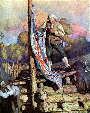 ![]() Капитан Смоллетт бросает вызов мятежникам, иллюстрация Н. К. Уайета для издания 1911 года. | |