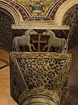 Капитель византийского типа с импостом. Церковь Сан-Витале, Равенна. VI век