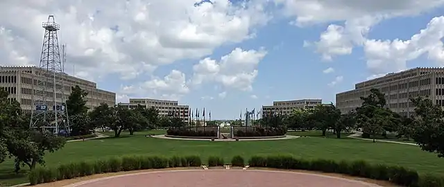 Капитолий примечателен тем, что стоит прямо на нефтяном месторождении, открытом в 1928 году[1] и располагает действующей буровой вышкой[2].