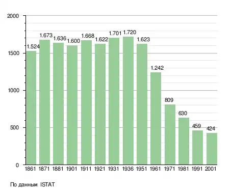 Население составляет 438 человек (2008 г.), плотность населения составляет 30 чел./км². Занимает площадь 14 км². Почтовый индекс — 26030. Телефонный код — 0372.