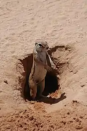 Капская земляная белка[1] (лат. Geosciurus inauris) — грызун трибы Xerini семейства беличьих. Обитает в основном в наиболее сухих районах юга Африки от ЮАР до Ботсваны и Намибии, включая Национальный парк Этоша. Живёт в неглубоких норах.