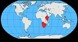 - обитает в юго-восточном Судане, северной Эритрее, большей части Эфиопского нагорья, северном и юго-восточном Сомали, юго-восточной Уганде, западной и центральной Кении и на крайнем севере Танзании[2].