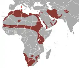 Вид широко распространён в Африке, за исключением лесистых областей в Западной и Центральной Африке, а также на Аравийском полуострове до Ирака. В Австралию интродуцирован.