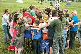 Весной девушки «завивали капусту» в обрядовых хороводах, повторяя в узоре хоровода «виток за витком, чтобы остаться осенью с вилком»[4]. Так же как весной в обрядах «засевания матери-земли» девушки символически «завивали «капустку», так осенью добрые молодцы «завивали «бел-хмель» вокруг девушек «тычинушек»[5].