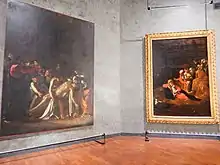 Микела́нджело Меризи да Карава́джо (итал. Michelangelo Merisi da Caravaggio; 29 сентября 1571, Милан[9] — 18 июля 1610, Порто-Эрколе) — итальянский художник, реформатор европейской живописи XVII века, основатель реализма в живописи, один из крупнейших мастеров барокко. Одним из первых применил манеру письма «кьяроскуро»[10][11] — резкое противопоставление света и тени, а также «тенеброcсо»[12] («тенеброзо»)[13]. Не обнаружено ни одного рисунка или эскиза, художник свои сложные композиции сразу реализовывал на холсте.