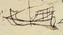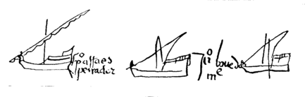 ![]() Самое раннее изображение каравеллы, 5 декабря 1488 года. | ![]() Изображения каравелл в подписях моряков начала XVI века. |