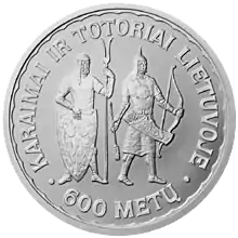 - Караимы обосновались в Великом княжестве Литовском в 1397—1398[2], когда литовский князь Витовт после похода в Крым вывел оттуда несколько сотен караимских и татарских семей (караимская традиция). Вначале караимы были поселены в Тракай, в северной части города, между двумя замками великого князя, на нынешней улице Караимов. Впоследствии поселения караимов возникли в Биржай, Науяместисе, Пасвалисе, Паневежисе. Эта версия признана правительством современной Литвы.