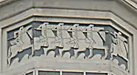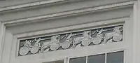 | Фрагмент жилого дома — центральная и правая часть (Строительство 1936 года, фото 2011 года) | Фрагмент жилого дома — окна и балконы (Строительство 1936 года, фото 2011 года) |