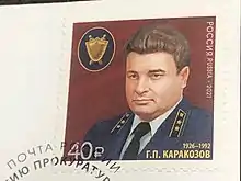 7 декабря 2021 г. в почтовое обращение тиражом 90 тыс. экз. вышла марка (художник-дизайнер Р. Комса), посвящённая государственному деятелю, работнику следственных органов прокуратуры Герману Петровичу Каракозову. На почтовой марке изображены портрет Г.П. Каракозова и щит особой формы с мечами как элемент форменной одежды. Дополнительно к выпуску почтовой марки издан конверты первого дня и изготовлен штемпель специального гашения для Москвы.