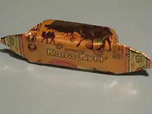 - Кара-Кум (конфета) — в честь пустыни были названы шоколадные конфеты, выпускавшиеся в СССР (Таганрогская кондитерская фабрика[6]), а в настоящее время — в России (Кондитерская фабрика «Красный Октябрь», Сормовская кондитерская фабрика), на Украине (Кондитерская корпорация Roshen), в Эстонии (Kalev), Белоруссии (Кондитерская фабрика «Коммунарка») и Казахстане (Кондитерская фабрика «Рахат»).