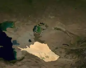 ![]() Спутниковый снимок Средней Азии. Внизу выделена пустыня Каракумы | |
