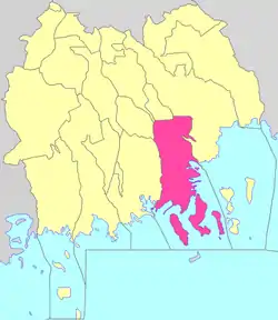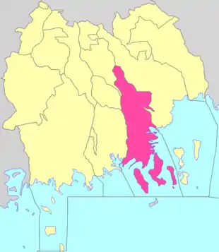 В состав территории входят каспийские низменные болотистые острова Зюдев, Галкин, Двенадцатый, Коневский, Баткачный и Зелёный. С севера граница муниципального образования проходит по реке Табола с юга на север вдоль берега Таболы на расстоянии 7850 м, поворачивает на юго-запад на расстоянии 375 м и проходит по валам прудового хозяйства колхоза «Память Ильича». С запада граница проходит по валам орошаемой системы колхоза протяженностью 11 км, поворачивает на северо-восток по валам орошаемых участков колхоза «Память Ильича» и идет на север к исходной точке вдоль берега реки Табола[3].