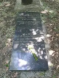 Памятник на могиле Карамзина В. М. и его дочери Ольги. (Верхнюю часть этой четырёхгранной колонны украшала мраморная статуэтка, утрачена).