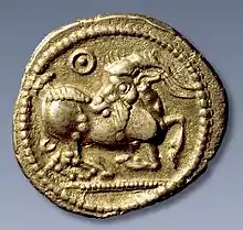![]() Предварительно 500 г. до н.э. Aigai Trihemiobol связано с Karanos Oracle | |