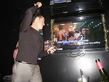 Карао́ке (сложное слово, образованное слиянием двух слов яп. 空 [カラ] кара — пустота и англ. orchestra — оркестр; на японском:オーケストラ — ōkesutora, дословно «пустой оркестр») — развлечение, заключающееся в непрофессиональном пении с использованием электронного устройства, позволяющего петь под заранее записанную музыку (фонограмму); также само это устройство.