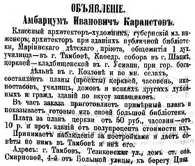 - Михаил Белых. Архитектор Карапетов (рус.) // Мичуринская правда. — 2013. — 19 апрель.