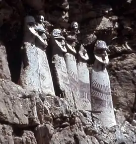 Хотя представители культуры Чачапойя обычно хоронили своих покойных в саркофагах, антропоморфные гробы упоминались в книге «Mercurio peruano» (1791), на что обратили внимание археологи Луи Ланглуа (Louis Langlois, 1939), Анри и Поль Райхлен (Henry y Paule Reichlen, 1950). Эта практика погребения была полностью забыта в последующем. Экспедиция во главе с Федерико Кауффманом Дойгом в 1985 г. смогла обнаружить в Карахиа ранее неизвестную группу саркофагов, сохранившихся практически неприкосновенными. В 2019 году не далеко от них после обвала в открывшейся пещере обнаружили мумии людей. В настоящее время находятся на изучении в Лиме.