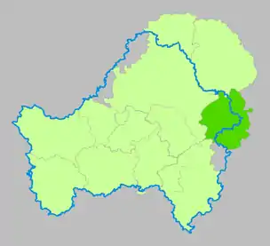(в границах 1927 года). Голубым цветом показана граница современной Брянской области.