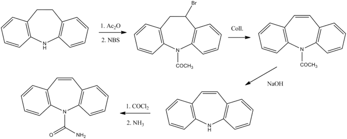 Карбамазепин был открыт в 1953 году химиком Вальтером Шиндлером в Базеле (Швейцария)[3]. В 1960 году Шиндлер разработал метод синтеза этого препарата, противоэпилептические свойства были обнаружены позднее.
