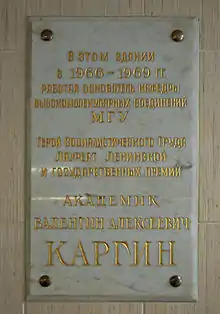 Валенти́н Алексе́евич Карги́н (1907—1969) — советский физикохимик, специалист по коллоидной химии и полимерам, основатель советской полимерной школы[1]. Академик АН СССР. Герой Социалистического Труда. Лауреат Ленинской премии и трёх Сталинских премий.[2]