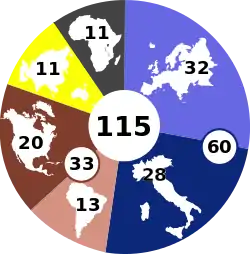 Конклав 2013 года стал самым многочисленным по числу участников среди предшественников. 60 кардиналов являлись выходцами из европейских стран, причём 28 — из Италии. 33 выборщика представляли Америку (из них 20 — Северную Америку), 11 — Африку, 10 — Азию, и 1 — Австралию[4].