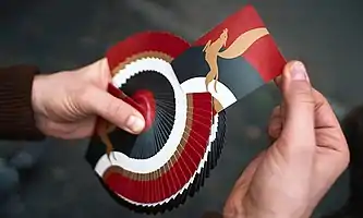 Веера и ленты: данные движения состоят в раскладывании карт в разные формы, чаще всего, в форме круга. Веер указательным или большим пальцем является основой для данной категории[20]; другие флориши из данной категории включают веер Riffle Димитрия Арлери, ленту LePaul[21] и веер давлением (англ. Pressure Fan)[22].