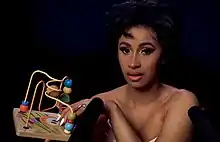 Белкалис Марленис Альма́нзар (англ. Belcalis Marlenis Almanzar[3]; род. 11 октября 1992), более известная как Карди Би[4] (англ. Cardi B) — американская хип-хоп-исполнительница, автор песен, актриса и телезвезда[5]. Родилась и была воспитана в Бронксе, Нью-Йорк. Обрела популярность после публикаций юмористических скетчей в Vine и Instagram[6]. С 2015 по 2017 год была участницей реалити-шоу Love & Hip Hop: New York на канале VH1, уже в то время увлекаясь музыкой. После завершения съемок выпускает два микстейпа — Gangsta Bitch Music, Vol. 1 и Vol. 2[7].